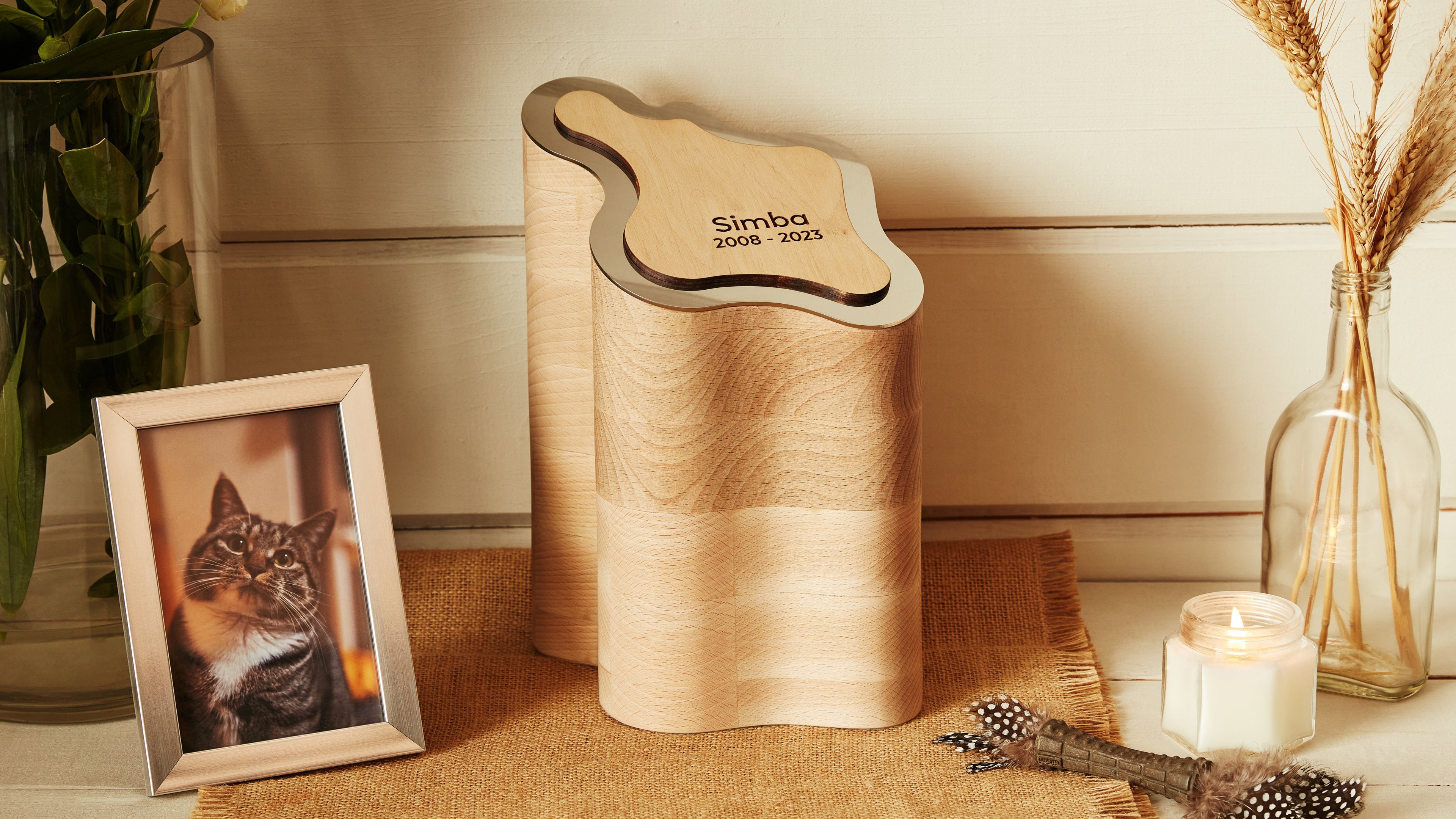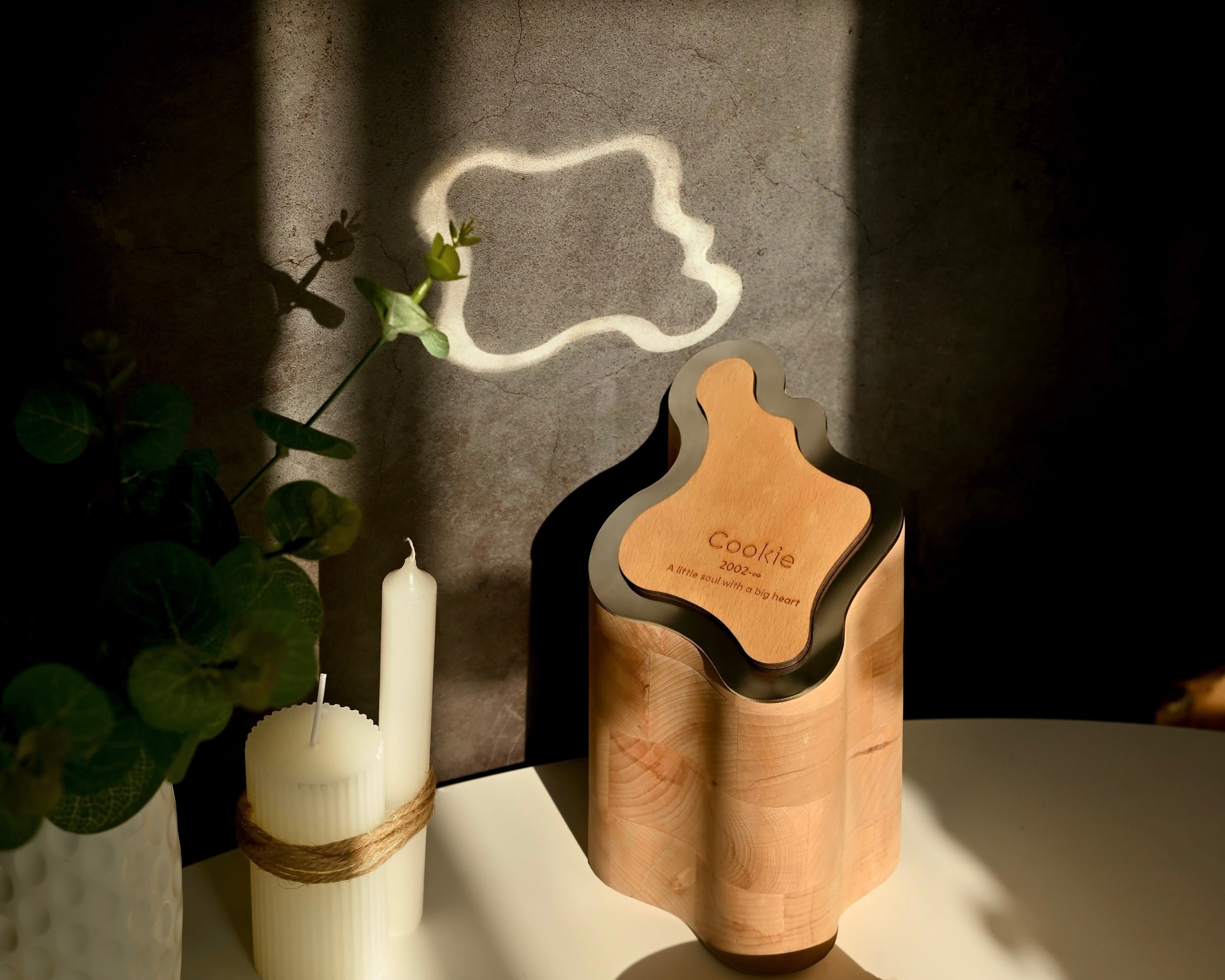 la placca superiore di LLIMI rispecchia i raggi, illuminadosi di calore e ricordano delicatamento lo spirito radioso di un amico peloso